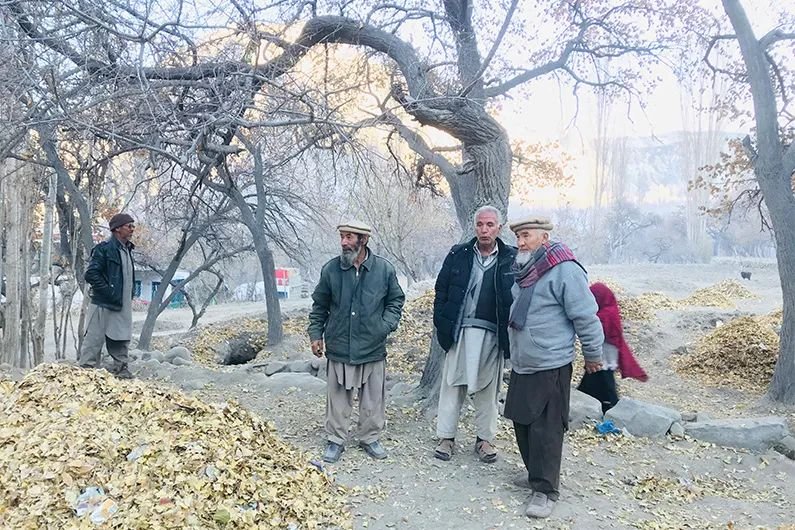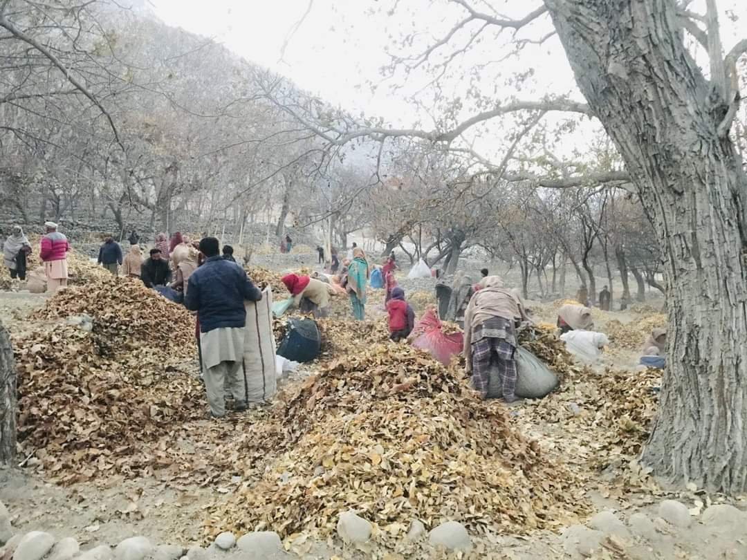 পাকিস্তানের গিলগিট-বালতিস্তানের ঘাঞ্চে জেলার খাপলু উপত্যকার গারবোং গ্রামে শুকনো পাতার কাছে একজন বয়স্ক মুসলিম দাঁড়িয়ে আছেন। গ্রামবাসীরা ঠাণ্ডা শীতকালে জ্বালানি হিসেবে ব্যবহার করার জন্য নভেম্বরের শেষ থেকে ডিসেম্বরের শুরুর মধ্যে শুকনো পাতা সংগ্রহ করে। এটাই তাদের জ্বালানি। এভাবেই কয়েকটি গ্রামের মুসলিম পরিবারের জীবন চলে।